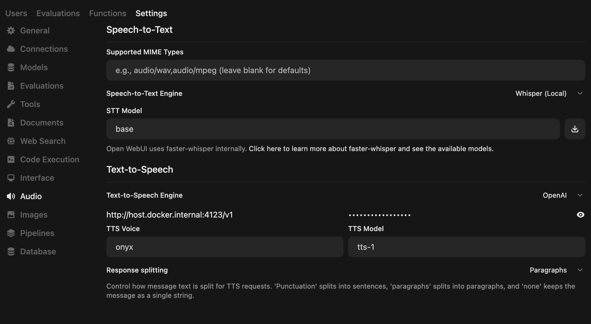 tts-1ortts-1-hd - TTS Voice: Name of the voice you've cloned (can also include aliases, defined in the frontend)